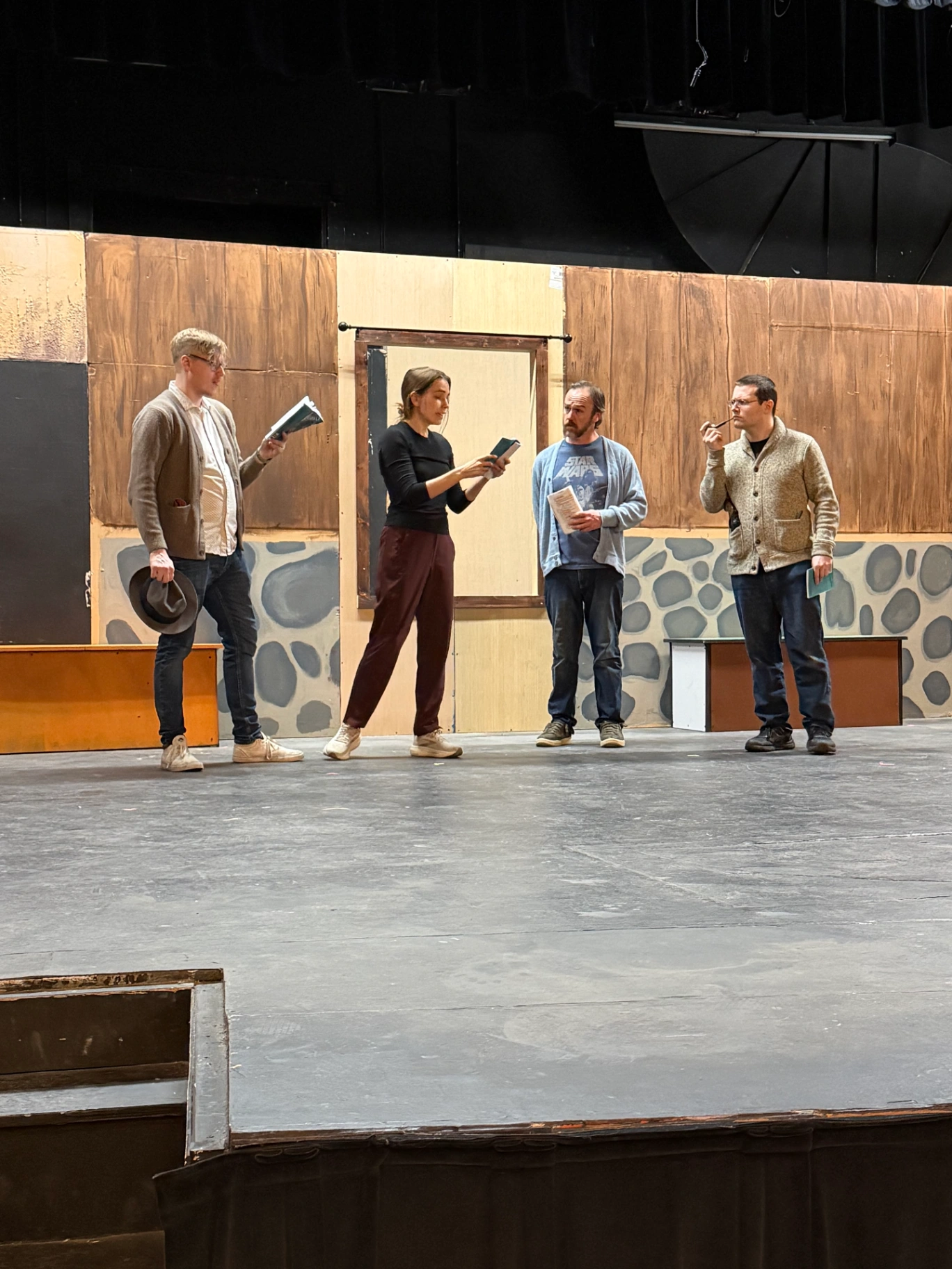 Despite the small cast, with all these different characters they portray, what is the biggest challenge directing this production? “I think the biggest challenge is going to be tracking costumes and props, because there are so many quick changes,” she reflects. “Because this show is so costume heavy, we have a whole week set away just to practice quick changes, costumes, and everything else. In fact this is the first time Pit has assigned a Lead Costume designer along with two additional design assistants. Our lead designer Cathy Arnett is handling the Holmes & Watson characters, and then the other two designers, Michelle Wallace & Anna Beardsley will handle the other two male actors and the female actress, who will have larger costume changes.”
