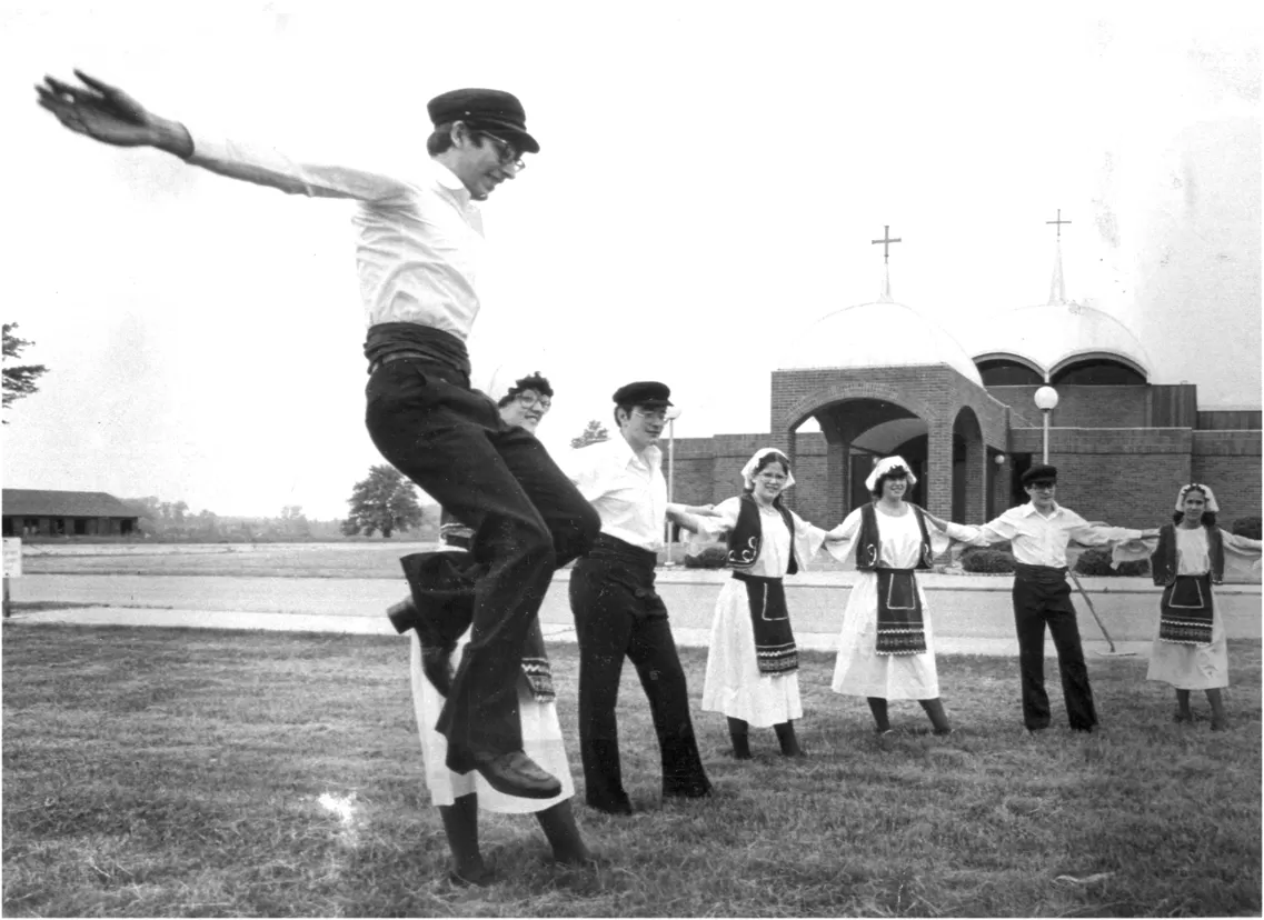 Another entertainment focus consists of the colorful dance troupes that are featured each year, adorned in ethnic dress, spinning and cascading like floral petals in the wind. "Generally we bring in a professional group of dancers," explains Lou, "and then we also want our young children to meet others within our culture, so we open it up to other groups in the Midwest and Canada, offering to put them up in area hotels and feed them. Now we bring in four or five different dance groups, primarily featuring the Kyklos Dance Troupe.