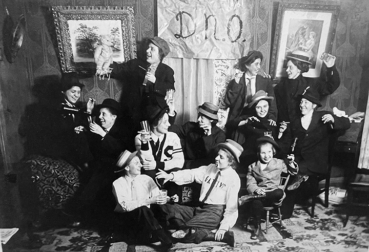 One common element these different sets of photos share is that many of the women in these pictures are dressed in men’s clothing, drinking libations and smoking cigars like they were stepping into the door of the future at Studio 54, and celebrating their bonds of camaraderie and companionship.